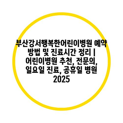 부산강서행복한어린이병원 예약 방법 및 진료시간 정리 | 어린이병원 추천, 전연락, 일요일 진료, 공휴일 병원 2025 에 대해 자주 묻는 질문 TOP 5