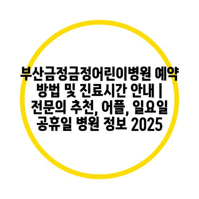 ✅ 부산금정어린이병원의 진료시간과 예약 방법을 자세히 알아보세요.