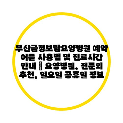 부산금정보람요양병원 예약 어플 사용법 및 진료시간 안내 | 요양병원, 전문의 추천, 일요일 공휴일 정보