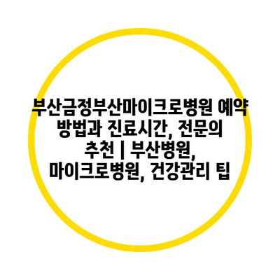 부산금정부산마이크로병원 예약 방법과 진료시간, 전연락 추천 | 부산병원, 마이크로병원, 건강관리 팁 에 대해 자주 묻는 질문 TOP 5
