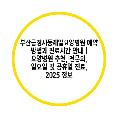 부산금정서동제일요양병원 예약 방법과 진료시간 공지 | 요양병원 추천, 전연락, 일요일 및 공휴일 진료, 2025 정보 에 대해 자주 묻는 질문 TOP 5