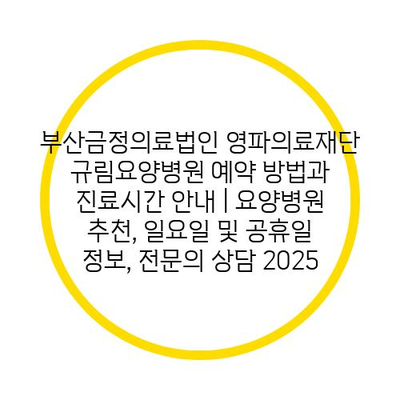 부산금정의료법인 영파의료재단 규림요양병원 예약 방법과 진료시간 공지 | 요양병원 추천, 일요일 및 공휴일 정보, 전연락 상담 2025 에 대해 자주 묻는 질문 TOP 5