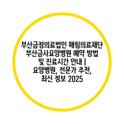 부산금정의료법인 해림의료재단 부산금사요양병원 예약 방법 및 진료시간 공지 | 요양병원, 전문가 추천, 최신 정보 2025 에 대해 자주 묻는 질문 TOP 5