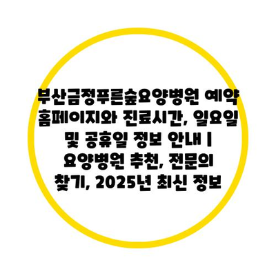 ✅ 부산금정푸른숲요양병원의 예약 방법과 진료시간을 지금 바로 알아보세요!