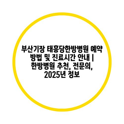 부산기장 태흥당한방병원 예약 방법 및 진료시간 공지 | 한방병원 추천, 전연락, 2025년 정보 에 대해 자주 묻는 질문 TOP 5
