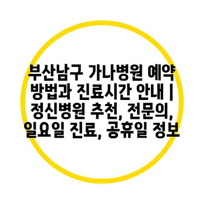 부산남구 가나병원 예약 방법과 진료시간 안내 | 정신병원 추천, 전문의, 일요일 진료, 공휴일 정보