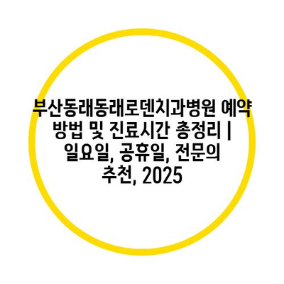 부산동래동래로덴치과병원 예약 방법 및 진료시간 총정리 | 일요일, 공휴일, 전연락 추천, 2025