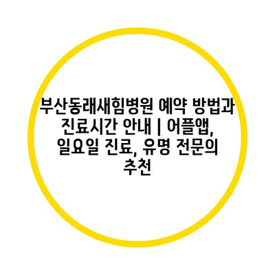 부산동래새힘병원 예약 방법과 진료시간 공지 | 어플앱, 일요일 진료, 유명 전연락 추천 에 대해 자주 묻는 질문 TOP 5