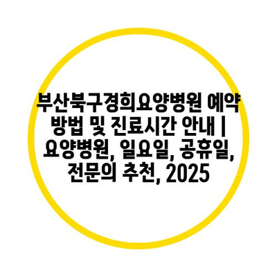 부산북구경희요양병원 예약 방법 및 진료시간 공지 | 요양병원, 일요일, 공휴일, 전연락 추천, 2025 에 대해 자주 묻는 질문 TOP 5