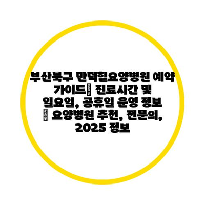 부산북구 만덕힐요양병원 예약 가이드| 진료시간 및 일요일, 공휴일 운영 정보 | 요양병원 추천, 전문의, 2025 정보