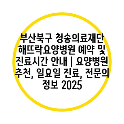 부산북구 청송의료재단 해뜨락요양병원 예약 및 진료시간 공지 | 요양병원 추천, 일요일 진료, 전연락 정보 2025 에 대해 자주 묻는 질문 TOP 5