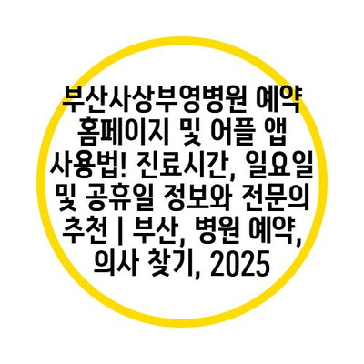 부산사상부영병원 예약 홈페이지 및 어플 앱 사용법! 진료시간, 일요일 및 공휴일 정보와 전연락 추천 | 부산, 병원 예약, 의사 찾기, 2025에 대해 자주 묻는 질문 TOP 5