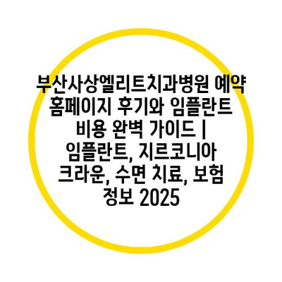 부산사상엘리트치과병원 예약 홈페이지 후기와 임플란트 비용 완벽 가이드 | 임플란트, 지르코니아 크라운, 수면 치료, 보험 정보 2025