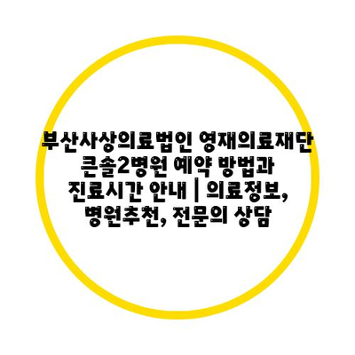 부산사상의료법인 영재의료재단 큰솔2병원 예약 방법과 진료시간 공지 | 의료정보, 병원추천, 전연락 상담 에 대해 자주 묻는 질문 TOP 5