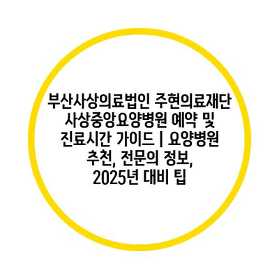 부산사상의료법인 주현의료재단 사상중앙요양병원 예약 및 진료시간 설명서 | 요양병원 추천, 전연락 정보, 2025년 대비 팁 에 대해 자주 묻는 질문 TOP 5