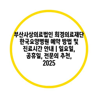 부산사상의료법인 희경의료재단 한국요양병원 예약 방법 및 진료시간 공지 | 일요일, 공휴일, 전연락 추천, 2025 에 대해 자주 묻는 질문 TOP 5