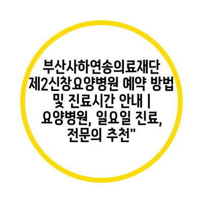 ✅ 부산사하연송의료재단의 진료 시간과 예약 방법을 지금 바로 알아보세요.