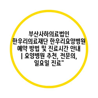 부산사하의료법인 한우리의료재단 한우리요양병원 예약 방법 및 진료시간 공지 | 요양병원 추천, 전연락, 일요일 진료” 에 대해 자주 묻는 질문 TOP 5