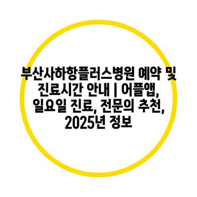 부산사하항플러스병원 예약 및 진료시간 공지 | 어플앱, 일요일 진료, 전연락 추천, 2025년 정보 에 대해 자주 묻는 질문 TOP 5