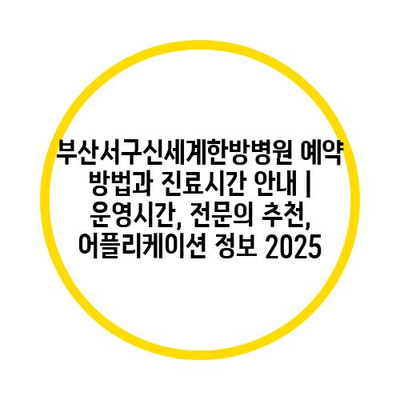 부산서구신세계한방병원 예약 방법과 진료시간 공지 | 운영시간, 전연락 추천, 어플리케이션 정보 2025에 대해 알아보겠습니다.