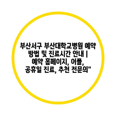 부산서구 부산대학교병원 예약 방법 및 진료시간 공지 | 예약 홈페이지, 어플, 공휴일 진료, 추천 전연락