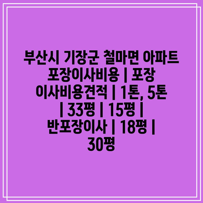 부산시 기장군 철마면 아파트 포장이사비용 | 포장 이사비용견적 | 1톤, 5톤 | 33평 | 15평 | 반포장이사 | 18평 | 30평에 대해 자주 묻는 질문 TOP 5