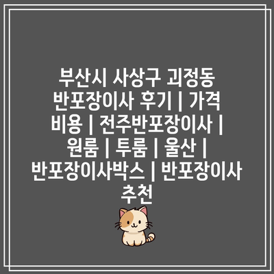 부산시 사상구 괴정동 반포장이사 비용 및 견적 비교 궁금하시죠? 지금 확인하세요!