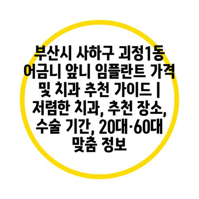 부산시 사하구 괴정1동 어금니 앞니 임플란트 가격 및 치과 추천 가이드 | 저렴한 치과, 추천 장소, 수술 기간, 20대·60대 맞춤 정보