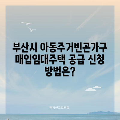 부산시 아동주거빈곤가구 매입임대주택 공급 신청 방법은?