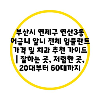 부산시 연제구 연산3동 어금니 앞니 전체 임플란트 가격 및 치과 추천 설명서입니다.