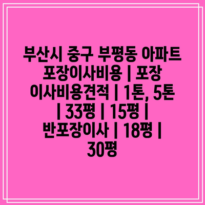 부산시 중구 부평동 아파트 포장이사비용 | 포장 이사비용견적 | 1톤, 5톤 | 33평 | 15평 | 반포장이사 | 18평 | 30평