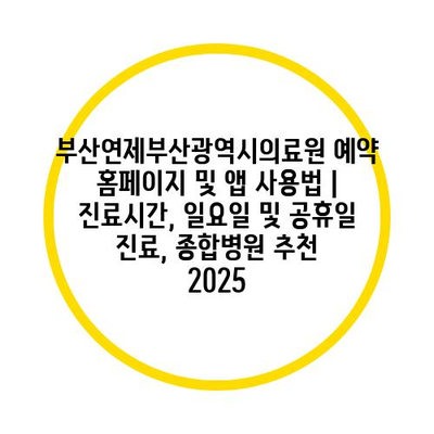 부산연제부산광역시의료원 예약 홈페이지 및 앱 사용법 | 진료시간, 일요일 및 공휴일 진료, 종합병원 추천 2025 에 대해 자주 묻는 질문 TOP 5
