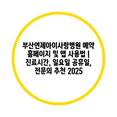 부산연제아이사랑병원 예약 홈페이지 및 앱 사용법 | 진료시간, 일요일 공휴일, 전연락 추천 2025에 대해 소개하겠습니다.