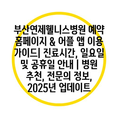 부산연제웰니스병원 예약 홈페이지 & 어플 앱 이용 설명서| 진료시간, 일요일 및 공휴일 공지 | 병원 추천, 전연락 정보, 2025년 업데이트 에 대해 자주 묻는 질문 TOP 5