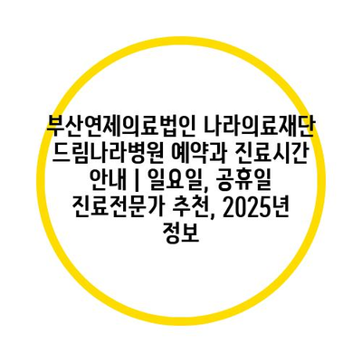 부산연제의료법인 나라의료재단 드림나라병원 예약과 진료시간 공지 | 일요일, 공휴일 진료전문가 추천, 2025년 정보 에 대해 자주 묻는 질문 TOP 5