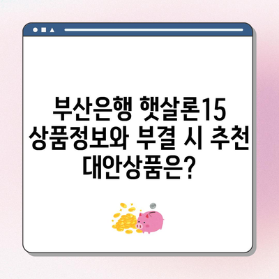 부산은행 햇살론15 상품정보와 부결 시 대안상품을 심층적으로 분석하여 제공합니다. 서민을 위한 대출상품의 모든 것을 알아보세요!