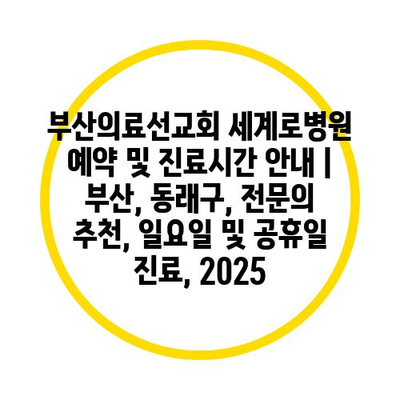 부산의료선교회 세계로병원 예약 및 진료시간 공지 | 부산, 동래구, 전연락 추천, 일요일 및 공휴일 진료, 2025 에 대해 자주 묻는 질문 TOP 5
