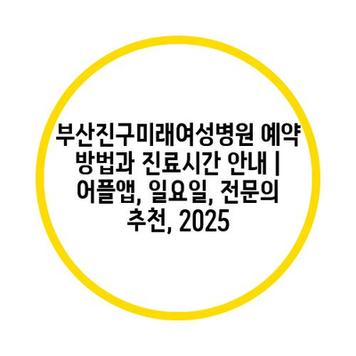 부산진구미래여성병원 예약 방법과 진료시간 공지 | 어플앱, 일요일, 전연락 추천, 2025 에 대해 자주 묻는 질문 TOP 5