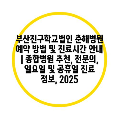 부산진구학교법인 춘해병원 예약 방법 및 진료시간 공지 | 종합병원 추천, 전연락, 일요일 및 공휴일 진료 정보, 2025 에 대해 자주 묻는 질문 TOP 5