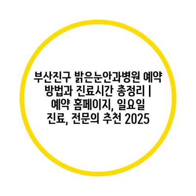 부산진구 밝은눈안과병원 예약 방법과 진료시간 총정리 | 예약 홈페이지, 일요일 진료, 전연락 추천 2025에 대해 소개합니다.