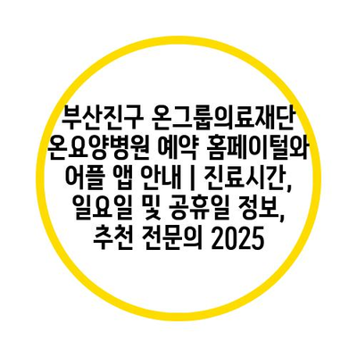 부산진구 온그룹의료재단 온요양병원 예약 홈페이털와 어플 앱 공지 | 진료시간, 일요일 및 공휴일 정보, 추천 전연락 2025 에 대해 자주 묻는 질문 TOP 5
