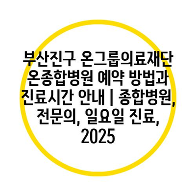 부산진구 온그룹의료재단 온종합병원 예약 방법과 진료시간 공지 | 종합병원, 전연락, 일요일 진료, 2025 에 대해 자주 묻는 질문 TOP 5