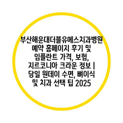 부산해운대더블유에스치과병원 예약 홈페이지 후기 및 임플란트 가격, 보험, 지르코니아 크라운 정보 | 당일 원데이 수면, 뼈이식 및 치과 선택 팁 2025 에 대해 자주 묻는 질문 TOP 5