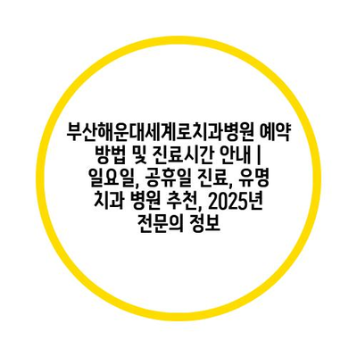 부산해운대세계로치과병원 예약 방법 및 진료시간 공지 | 일요일, 공휴일 진료, 유명 치과 병원 추천, 2025년 전연락 정보 에 대해 자주 묻는 질문 TOP 5