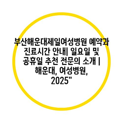 부산해운대제일여성병원 예약과 진료시간 공지| 일요일 및 공휴일 추천 전연락 소개 | 해운대, 여성병원, 2025″ 에 대해 자주 묻는 질문 TOP 5