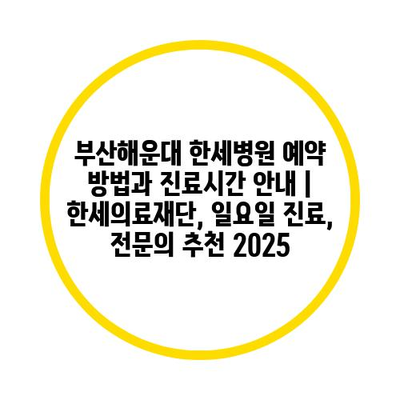부산해운대 한세병원 예약 방법과 진료시간 공지 | 한세의료재단, 일요일 진료, 전연락 추천 2025 에 대해 자주 묻는 질문 TOP 5