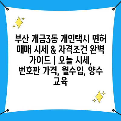 부산 개금3동 개인택시 면허 매매 시세 & 자격조건 완벽 설명서 | 오늘 시세, 번호판 가격, 월수입, 양수 교육 에 대해 자주 묻는 질문 TOP 5