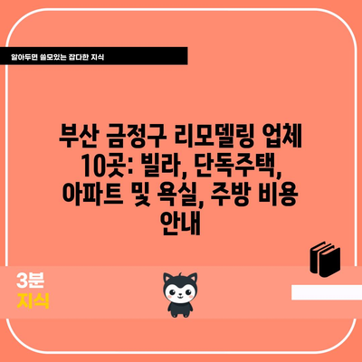 부산 금정구 리모델링 업체 10곳: 빌라, 단독주택, 아파트 및 욕실, 주방 비용 안내