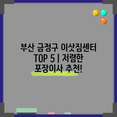 💡 부산 금정구에 가장 저렴한 이사 서비스는 무엇인지 알아보세요. 💡