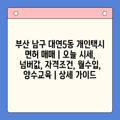 ✅ 부산 남구 대연5동 개인택시 면허 매매 시세, 넘버값, 자격조건, 월수입, 양수교육 등 상세 정보를 확인하세요.